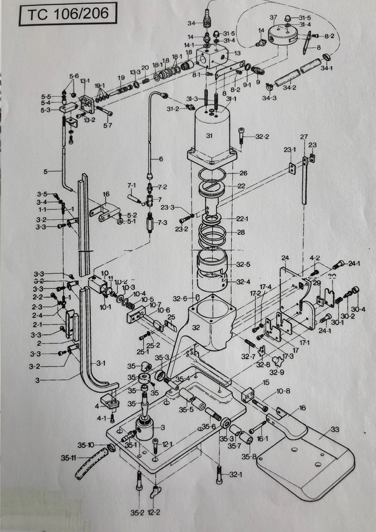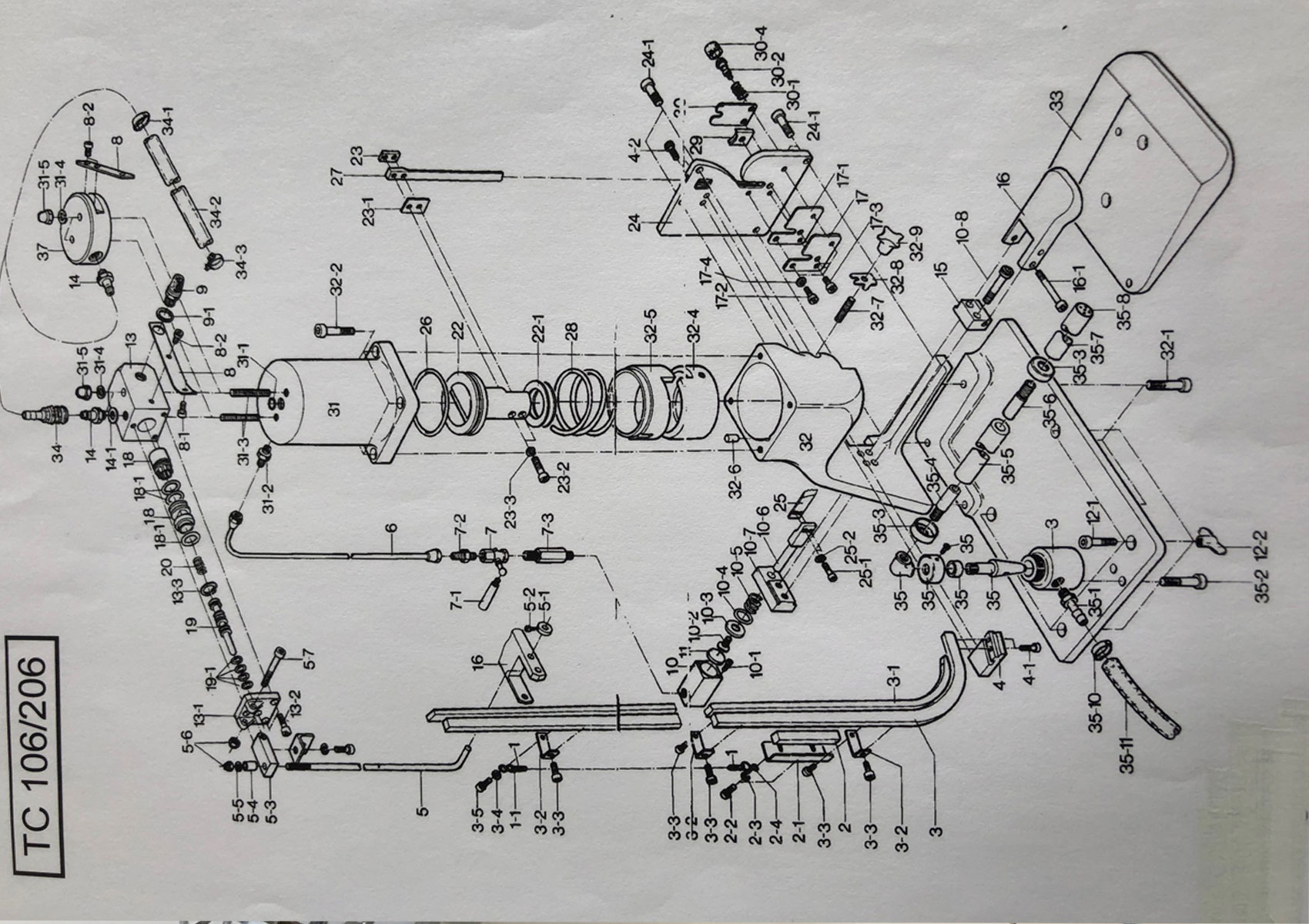 Základná doska, razník, matrica, pružina hl. valca, pružina ventilovej hlavy, pružina rezacieho noža, hlavný valec, piest hl. valca, piest ventilovej hlavy, rezací nôž, sada základnej dosky a iné.